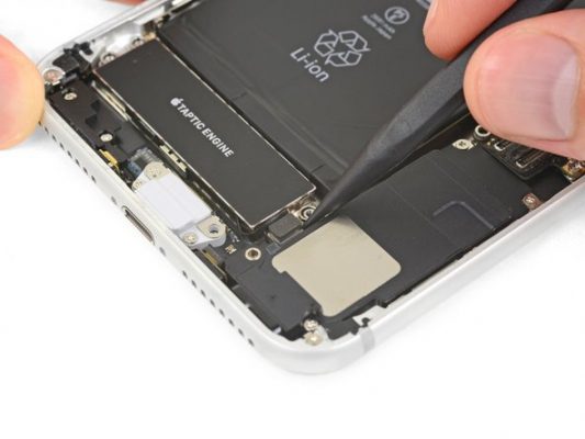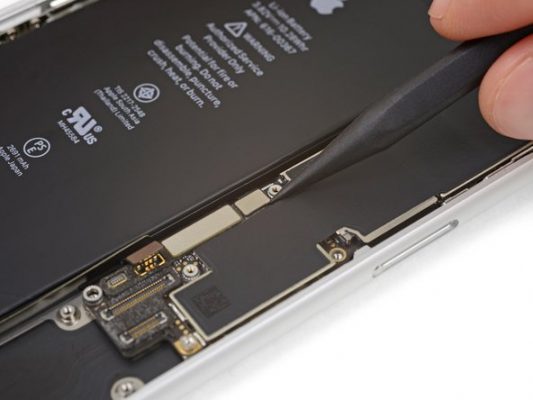نکته: قبل از شروع پروسه تعویض برد گوشی آیفون 8 پلاس حتما شارژ باتری گوشی را خالی کنید یا به کمتر از 25 درصد برسانید. انجام این کار سبب میشود که احتمال بروز حوادثی مثل آتش گرفتن و انفجار باتری در حین تعمیر گوشی و استرس های وارد بر آن به حداقل برسد.