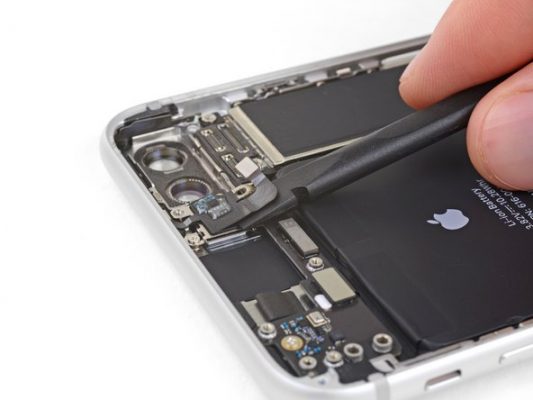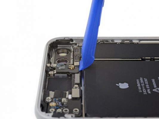 با نوک پنس براکت پشت دوربین های اصلی iPhone 8 Plus را بردارید.