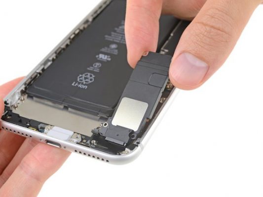 کپسول اسپیکر را به سمت عقب بکشید تا کاملا از گوشه قاب آیفون جدا شود.